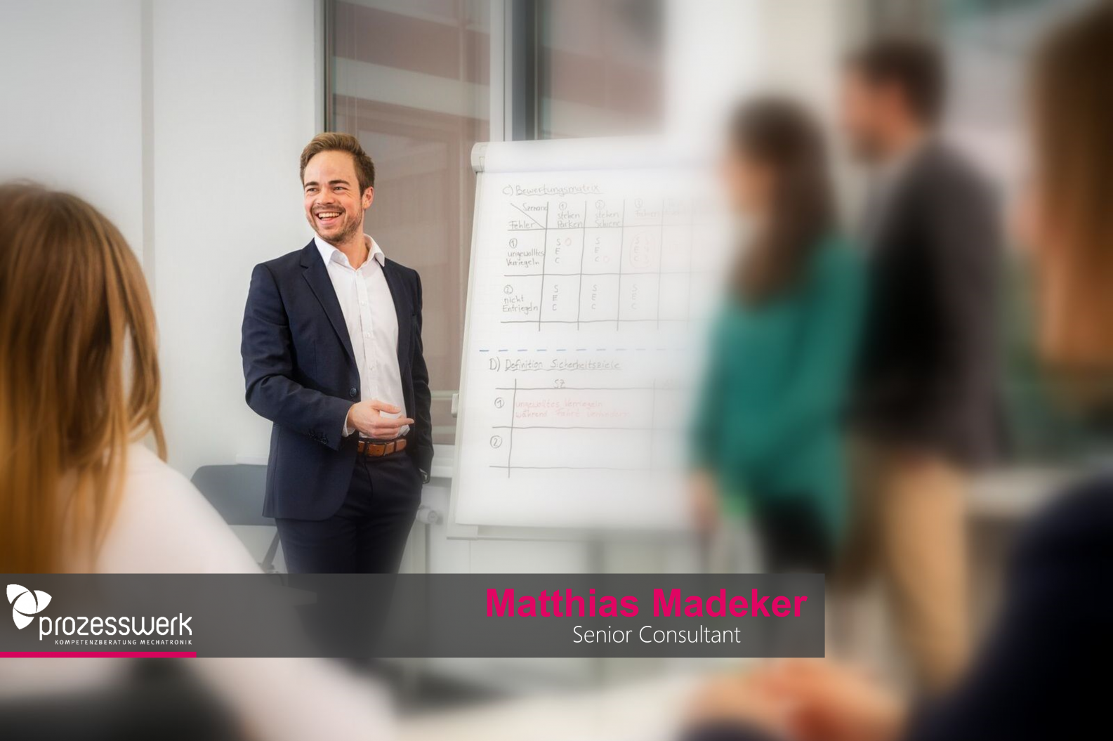 Mein Schwerpunkt bei Prozesswerk liegt in der Anwendung von Qualitätsmethoden im Allgemeinen und insbesondere bei der Erstellung von sogenannten FMEA, also Fehlermöglichkeits- und Einflussanalysen. Die FMEA ist die am Häufigsten verwendete Methode zur Fehlervermeidung und wird präventiv erarbeitet, noch bevor der jeweilige Fehler überhaupt auftreten kann. Dadurch lassen sich grundsätzlich sehr hohe Kostensenkungen generieren, da die Fehler nicht erst zu einem späten Zeitpunkt im Entstehungsprozess, wie beispielsweise während der Produktion oder gar im Kundenumfeld, aufgedeckt werden.